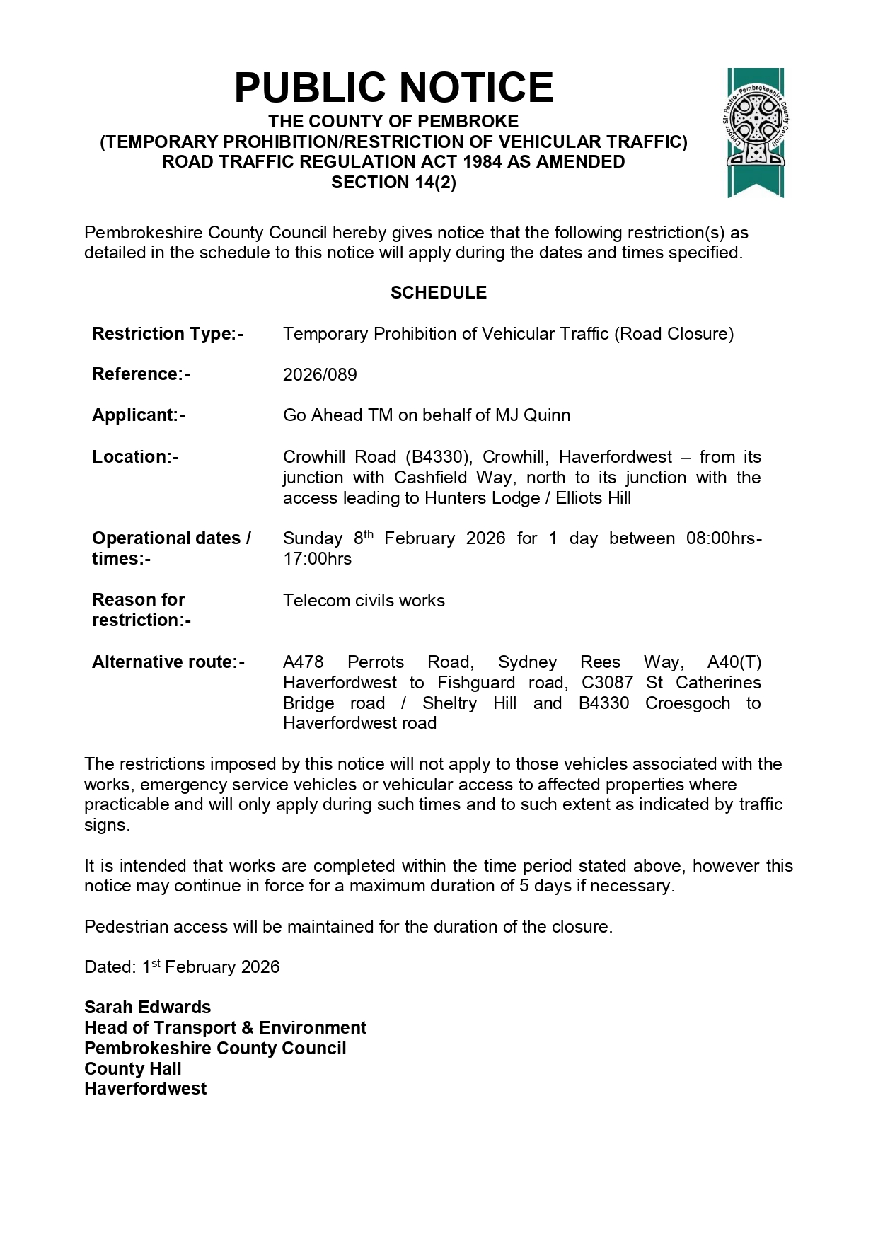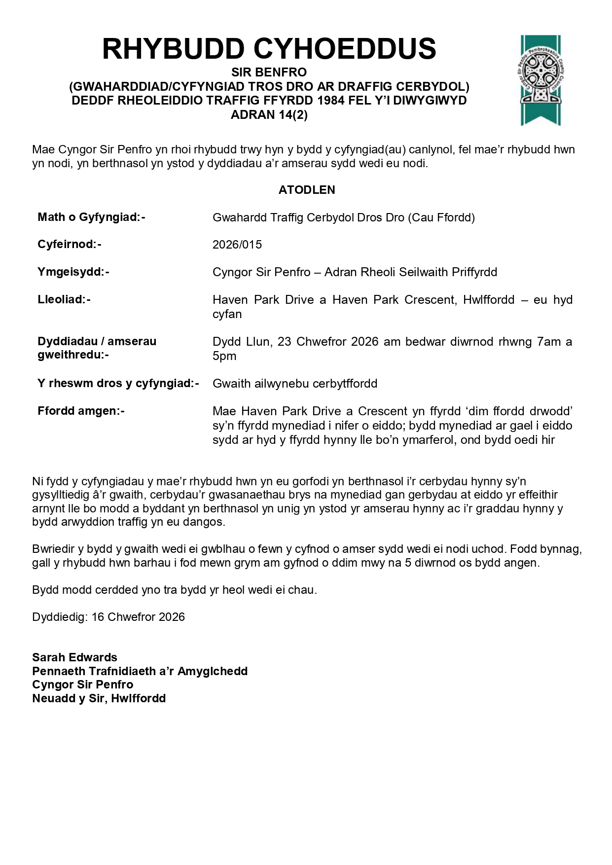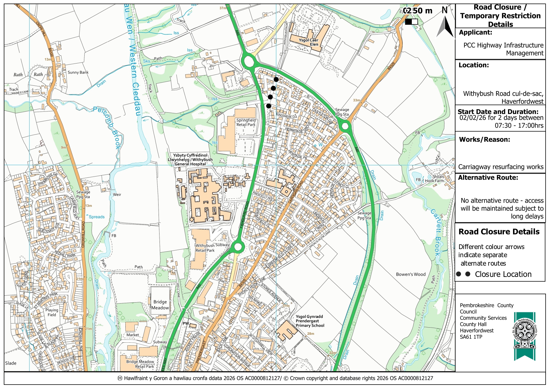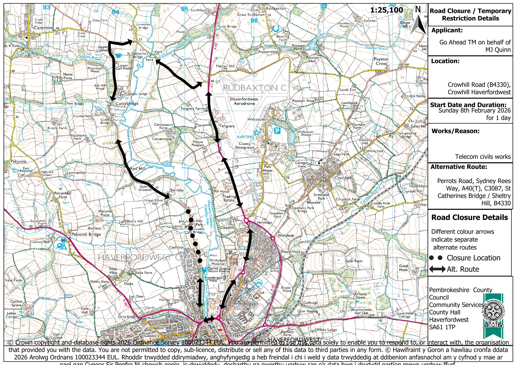 Dod o Hyd i Fanylion ar Gau Ffyrdd a Dargyfeiriadau yn Hwlffordd